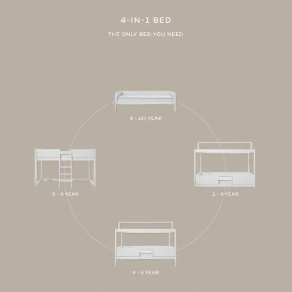 Het LIFETIME Kinderbed – 4-in-1 Bed – Premium Wit Gelakt is dé flexibele oplossing die met je kind meegroeit. Dankzij het slimme ontwerp kun je het bed eenvoudig ombouwen van een peuterbed met dakframe tot een junior- of hoogslaper, geschikt voor kinderen vanaf 2 jaar tot ver in de tienerjaren. Eén bed, vier opstellingen – ideaal voor elke fase van opgroeien. Dit bed is vervaardigd uit massief, noestvrij grenenhout en afgewerkt met een witte meubellak op waterbasis, gehard met UV-licht. Hierdoor ontstaat een sterk, krasbestendig oppervlak dat gemakkelijk schoon te maken is. De combinatie van gelakt grenen en MDF-elementen zorgt voor een strak en egaal resultaat. Dankzij het dakframe voeg je eenvoudig een stoffen dak toe voor een speelse sfeer in de kinderkamer. Veiligheid staat voorop: het bed voldoet aan de strenge EU-norm EN747-1:2024 en is TÜV SÜD gecertificeerd. Daarmee ben je verzekerd van hoogwaardige kwaliteit en maximale veiligheid. Met standaardafmetingen van 90×200 cm en een duurzame constructie is dit bed een investering waar je jarenlang op kunt vertrouwen.