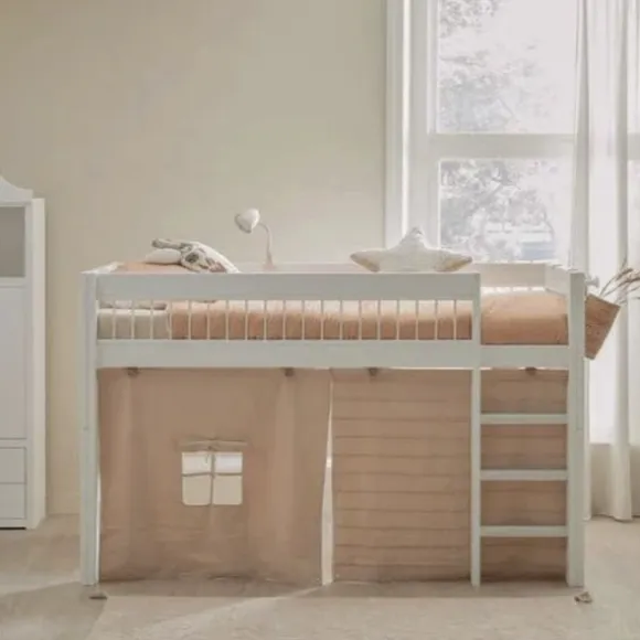 Dit bed is geschikt voor kinderen vanaf 5 jaar en kan eenvoudig worden omgebouwd tot een klassiek eenpersoonsbed wanneer je kind groter wordt of wanneer de kamerindeling verandert. Met de optionele thematische speelgordijnen tover je het bed eenvoudig om tot bijvoorbeeld een dinosaurushol of sprookjeskasteel. De mogelijkheden zijn eindeloos.