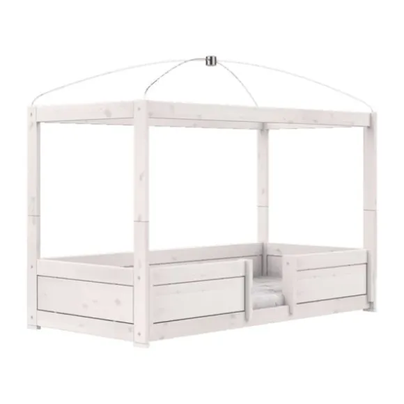 Het bed is vervaardigd van massief grenenhout, wat staat voor duurzaamheid en stabiliteit. De premium rolbodem zorgt voor een comfortabele en ondersteunende slaapbasis. Het 4‑in‑1 systeem biedt flexibiliteit: je past de hoogte aan afhankelijk van de behoefte en groeifase van je kind. De open dakvorm zorgt voor luchtigheid en biedt ruimte om te decoreren met gordijnen, lichtjes of zachte stoffen.