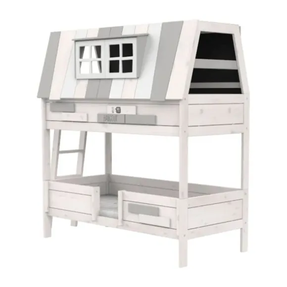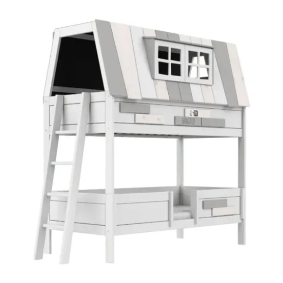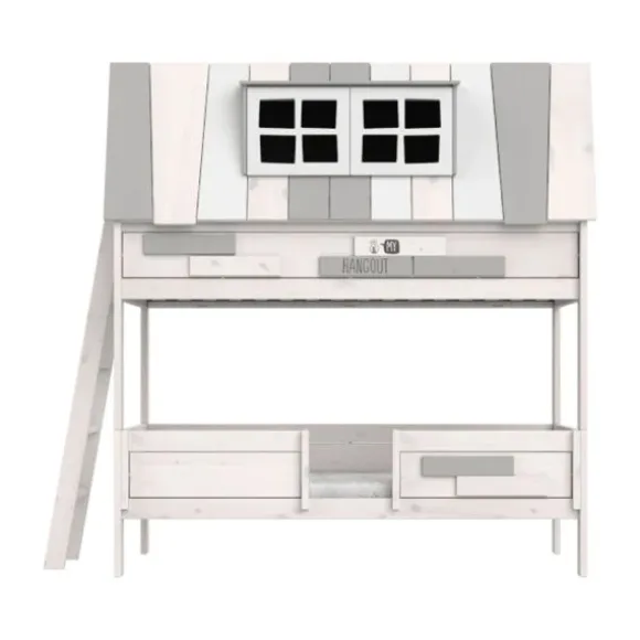 Het LIFETIME Kidsroom My Hangout Stapelbed is hét droombed voor avontuurlijke kinderen. Dit originele huis-stapelbed biedt niet alleen twee comfortabele slaapplaatsen, maar ook een fantasierijke plek om te spelen, relaxen of boeken te lezen. De bovenste slaapruimte is vormgegeven als een gezellig hutje met raampjes, luikjes en een speels dak. Hier kan jouw kind zich helemaal terugtrekken in zijn of haar eigen knusse plekje.