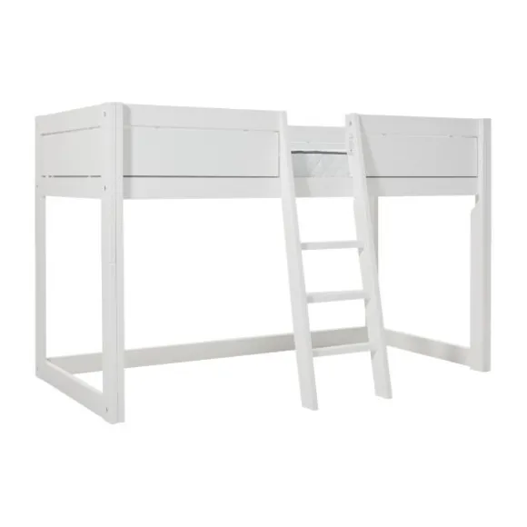 Als derde bed kan er een halfhoogslaper van gemaakt worden. Het hemelframe gaat er dan helemaal af. Onder de hoogslaper bevind zich een ruimte waar allerlei spullen neergezet kunnen worden of het is leuk om te gebruiken als speelruimte. In het midden staat een trap met drie treden.