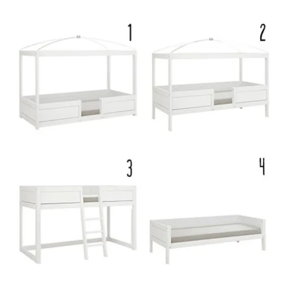 Met het LIFETIME Kidsrooms 4 in 1 hemelbed ben je voor altijd klaar. Het groeit namelijk met een kind mee. Het begint heel laag op de grond en uiteindelijk wordt het een normaal basisbed. Zo kan het kind altijd slapen in hetzelfde bed.