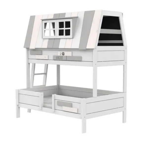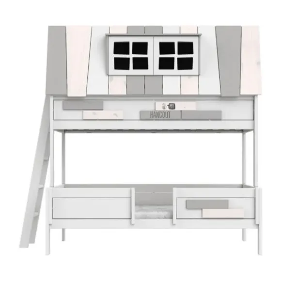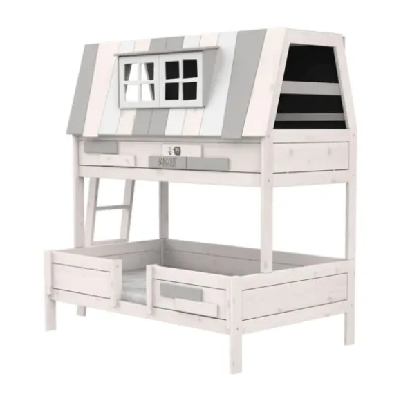 Het LIFETIME My Hangout Stapelbed – White Wash combineert slapen en spelen op een magische manier. Dit karaktervolle stapelbed is ontworpen als een speels huis met ramen, en nodigt kinderen uit om zich onder te dompelen in fantasie terwijl ze slapen of spelen. Via een ladder klim je omhoog naar het bovenste bed, dat fungeert als gezellige schuilplaats of speelzolder, terwijl het ruimere onderbed extra comfort en ruimte biedt.