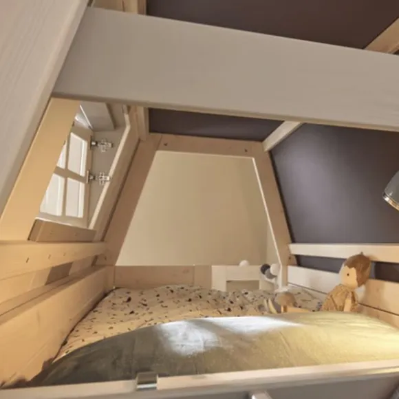 Met charmante details zoals ramen die open kunnen en een huisgevoel op hoogte, is dit stapelbed een droom voor elk kind. En net zoals bij andere LIFETIME-modellen kun je het bed later uitbreiden met extra opslag of een logeerbed, afhankelijk van je wensen.
