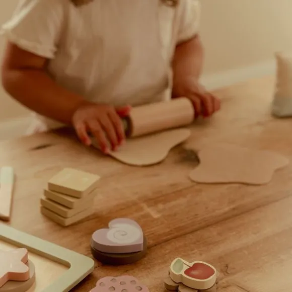 De Little Dutch Bakkerset – Hout is een droom voor kleine bakkers in de dop. Deze uitgebreide speelset biedt alles wat nodig is om de lekkerste koekjes en taartjes te “bakken”. Van het mengen van ingrediënten tot het versieren van lekkernijen: kinderen kunnen zich helemaal uitleven in hun eigen fantasiekeuken. Perfect om te combineren met de Little Dutch speelkeuken voor nog meer speelplezier!
