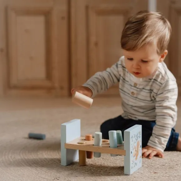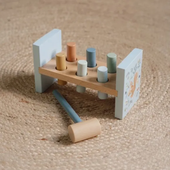 Met de Little Dutch Forest Friends Hamerbank ontwikkelt je kindje de hand- oog coördinatie op een speelse manier. In het bankje passen zes gekleurde staafjes die je kindje er met het hamertje in kan slaan. Als je kindje alle staafjes er in heeft geslagen, draai je het bankje eenvoudig weer om zodat je kindje opnieuw kan beginnen. Dankzij de vrolijke kleurtjes wordt je kindje uitgedaagd met de hamerbank te spelen. De hamerbank is gemaakt van hoogwaardig materiaal en bestaat uit een hamerbank, zes staafjes en een hamertje.
