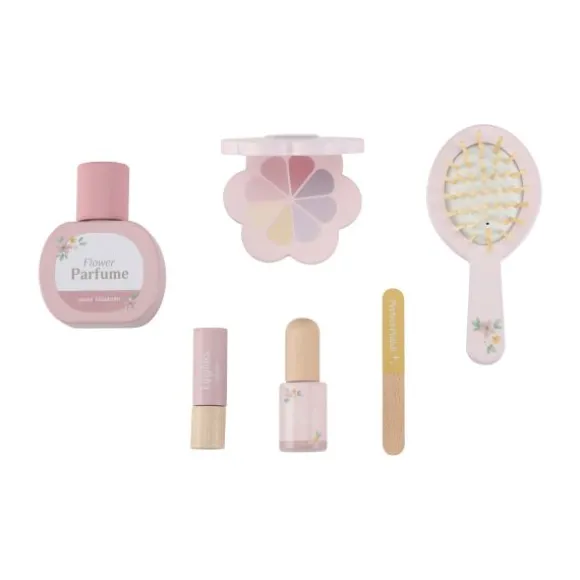 - – 6 houten accessoires inbegrepen: haarborstel, lippenstift, nagellak, parfumflesje, oogschaduw en nagelvijl