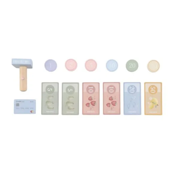 De kassa is gemaakt van FSC-gecertificeerd hout en afgewerkt in zachte kleuren met kindvriendelijke verf. Perfect om rollenspel, rekenen en sociale vaardigheden te stimuleren. Een leuke aanvulling op bijvoorbeeld de Little Dutch marktkraam.