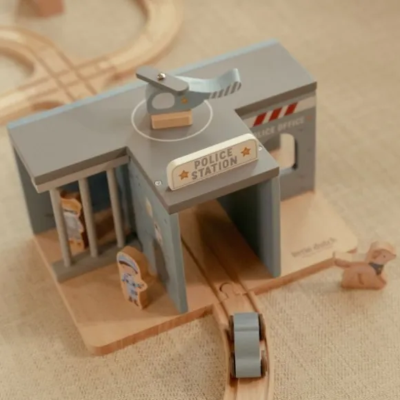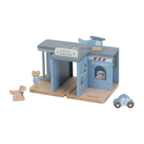 De set wordt geleverd met diverse accessoires, waaronder een politieagent, een boef, een hond, een politieauto en een helikopter. Daarmee kunnen kinderen boeven achtervolgen, arrestaties doen en de orde handhaven in hun speelstad. Het politiebureau sluit bovendien perfect aan op de Little Dutch treinbaan en voertuigensets, waardoor de speelwereld nog groter en veelzijdiger wordt.
