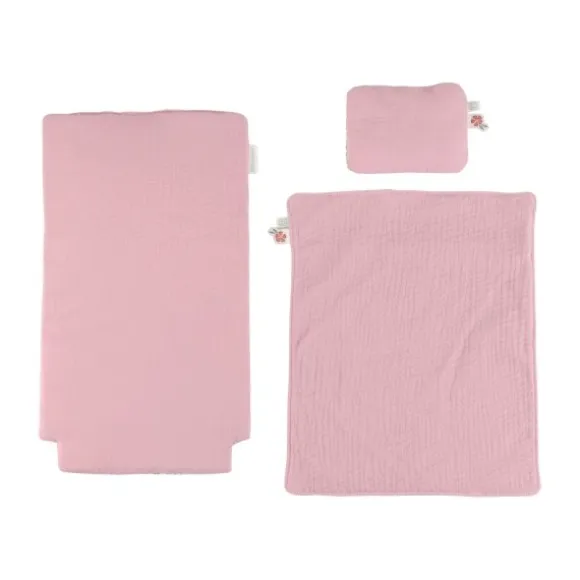 De poppenwagen wordt geleverd met een comfortabel matrasje, een zacht kussentje en een warm dekentje, allemaal uitgevoerd in het geliefde Soft Flowers-dessin van Little Dutch. Dit zorgt niet alleen voor een comfortabele rit voor poppen en knuffels, maar maakt de wagen ook extra sfeervol en uitnodigend om mee te spelen.