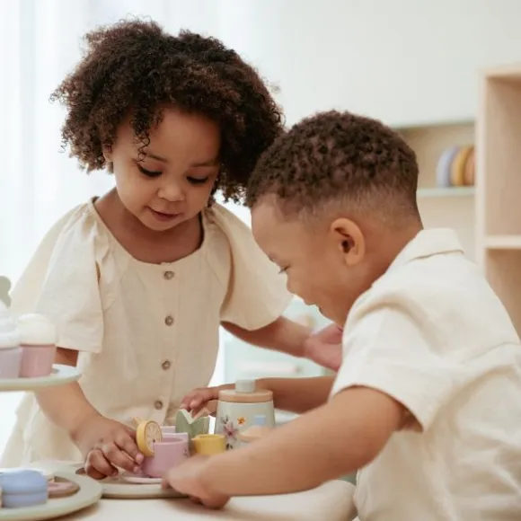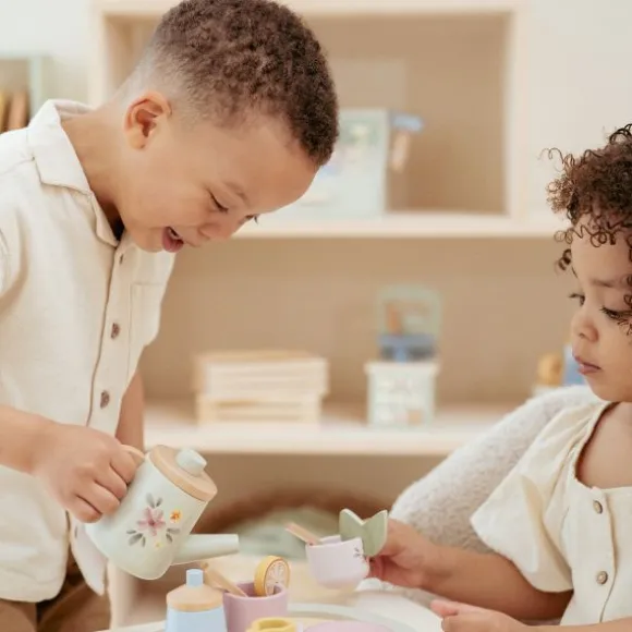Het Little Dutch Theeservies – Hout maakt elk fantasietheetje een waar feestje! Deze charmante houten theeset is perfect voor gezellige theekransjes met vriendjes, knuffels of poppen. Je kindje kan eindeloos thee inschenken en serveren, terwijl sociale vaardigheden en creativiteit worden gestimuleerd. Ideaal voor rollenspel in combinatie met andere keukenspeelgoed van Little Dutch.