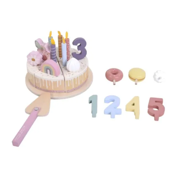 Met de Little Dutch Verjaardagstaart – Roze is het elke dag een feestje. De taart kan je versieren met de meegeleverde versiersels. Verschillende kaarsjes, donuts, slagroom en nog veel meer. Verder is de verjaardagstaart ook leuk om als cadeau weg te geven. Kinderen vanaf 3 jaar mogen met deze taart spelen en zullen zich hier uren lang mee vermaken. Je kan de verschillende onderdelen van de taart eenvoudig reinigen door middel van een vochtige doek.