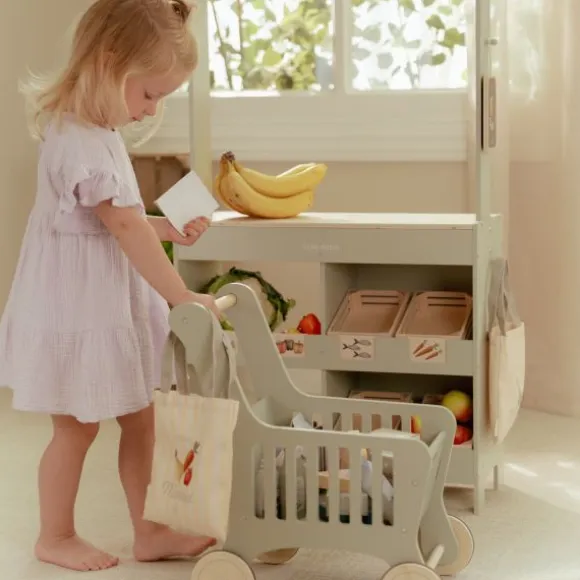 Deze houten winkelwagen stimuleert fantasierijk rollenspel, sociale interactie en motorische vaardigheden. Perfect te combineren met andere Little Dutch producten zoals de speelkeuken, weegschaal of kassa. Dankzij het duurzame en kindvriendelijke ontwerp is de winkelwagen een veilige en stijlvolle toevoeging aan elke speelruimte.