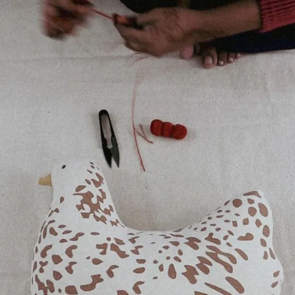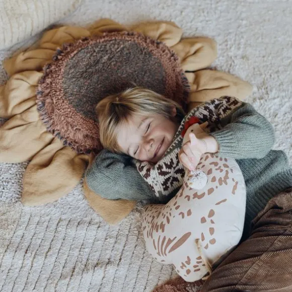Het Lorena Canals Kussen – Chicken brengt een speels en vrolijk accent in de baby- of kinderkamer. Dit zachte kussen in de vorm van een kip is handgemaakt van natuurlijk katoen en voorzien van kastanjebruine details die doen denken aan het verenkleed van een echte kip. De bungelende touwtjes als pootjes maken het ontwerp extra charmant en zorgen voor een speels effect. Het kussen voelt heerlijk zacht aan en is dankzij het gebruik van natuurlijke materialen hypoallergeen en huidvriendelijk. Combineer het kussen met de bijpassende vloerkleden en accessoires uit de boerderijcollectie van Lorena Canals voor een sfeervolle en gezellige kinderkamer. Dankzij het lichte gewicht is het eenvoudig te verplaatsen en ideaal als decoratie én knuffelkussen.