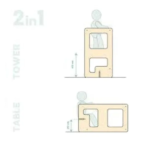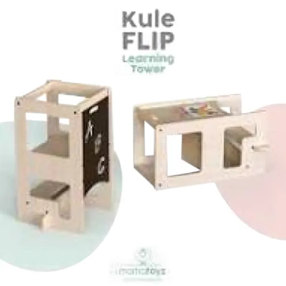 De Mamatoyz Kule Flip Leertoren – Hout is een multifunctioneel meubelstuk dat je kindje stimuleert om zelfstandig te ontdekken en mee te doen met dagelijkse activiteiten. De leertoren kan rechtop gebruikt worden zodat je kindje veilig op hoogte kan staan, of op zijn zij gelegd worden om te dienen als speeltafel.