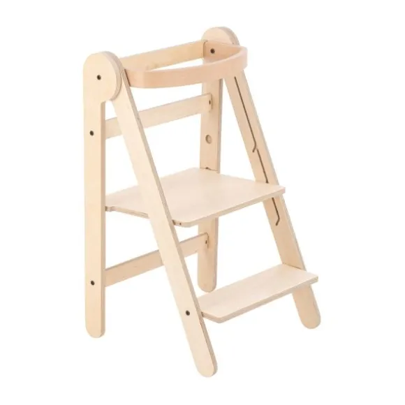 Met de Mamatoyz Leertoren – Naturel betrek je jouw kindje op een veilige en speelse manier bij alledaagse activiteiten in de keuken of aan tafel. Dankzij het stevige houten ontwerp kan je kind op gelijke hoogte staan met jou, wat het ideaal maakt om samen te koken, bakken of knutselen. De leertoren stimuleert de zelfstandigheid en motorische ontwikkeling van je kind, terwijl jij met een gerust hart toekijkt. De vernieuwde Mamatoyz Leertoren is voorzien van verschillende verbeteringen voor extra veiligheid en gebruiksgemak. Zo zijn er zijsteunpootonderdelen toegevoegd voor meer stabiliteit en is er een extra steunbalk onder het platform geplaatst. Hierdoor is de draagkracht verhoogd van 50 kg naar maar liefst 120 kg – perfect voor jarenlang gebruik. Daarnaast heeft de leertoren nu een handig vergrendelingsmechanisme om ongewenst inklappen te voorkomen, waardoor het product nog veiliger is in gebruik. Het opzetten is eenvoudiger dan ooit, en dankzij het opvouwbare ontwerp berg je de leertoren gemakkelijk op wanneer je hem niet gebruikt. De Mamatoyz Leertoren – Naturel is verstelbaar in twee hoogtes en geschikt voor kinderen van 1 tot 5 jaar. Een duurzaam, stijlvol en functioneel meubelstuk dat niet mag ontbreken in een kindvriendelijke keuken!