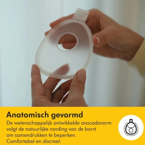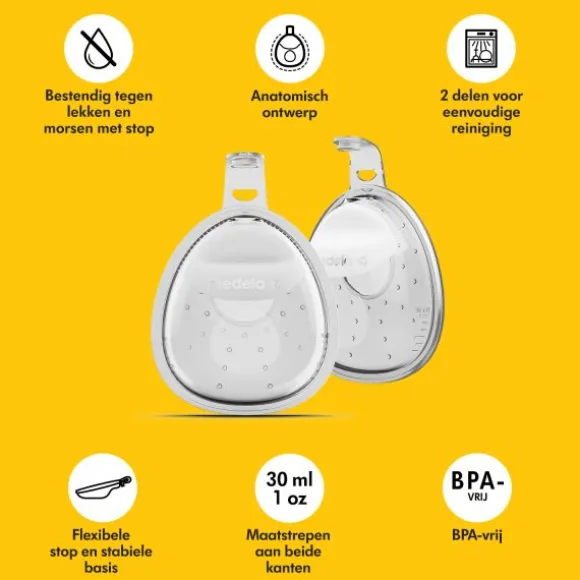 De Medela InBra™ Moedermelkcollectors zijn ontworpen om op een comfortabele en discrete manier moedermelk op te vangen. Ze passen direct in je beha en vangen lekken op tijdens het voeden, kolven of tussendoor. Dankzij de zachte, BPA-vrije siliconen achterkant met SensoPearls™ voelen ze prettig aan op de huid en dragen ze prettig, zelfs bij langdurig gebruik. Het anatomische ontwerp volgt de natuurlijke vorm van de borst, waardoor druk wordt verminderd en de opvangschelpen onzichtbaar blijven onder kleding. De flexibele stop voorkomt lekken en morsen, terwijl de schenktuit het makkelijk maakt om melk over te schenken. Ideaal voor gebruik thuis of onderweg. De opvangschelpen hebben een inhoud van 30 ml en staan stabiel wanneer je ze neerzet. Ze bestaan uit twee delen, zijn eenvoudig te reinigen en mogen in de vaatwasser. Zo houd je elke druppel melk hygiënisch en veilig bewaard.