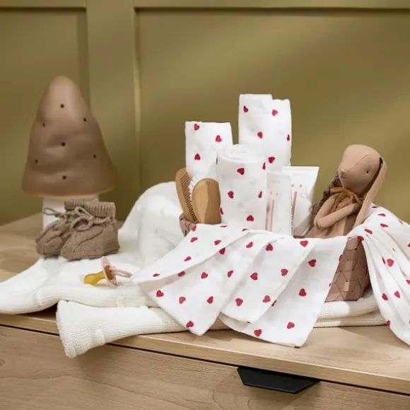 De Meyco Sweet Heart Starterset Hydrofiel – 9-Pack – Red is een onmisbare musthave voor elke babyuitzet. Deze 9-delige set bevat alle essentiële hydrofiele producten zoals luiers, monddoekjes en washandjes, allen voorzien van een schattig hartjespatroon. Ideaal voor je kleine “sweet heart”! De multifunctionele items zijn perfect voor dagelijks gebruik zoals na het badderen, bij het verschonen of tijdens het voeden. Gemaakt van 100% hydrofiel katoen, voelen ze heerlijk zacht aan op de tere babyhuid en zijn ze snel drogend en goed vochtabsorberend. Met deze starterset heb je alles wat je nodig hebt voor een goede babyverzorging in één keer in huis. De neutrale kleuren maken het eenvoudig om de set te combineren met de rest van de producten van het merk Meyco.