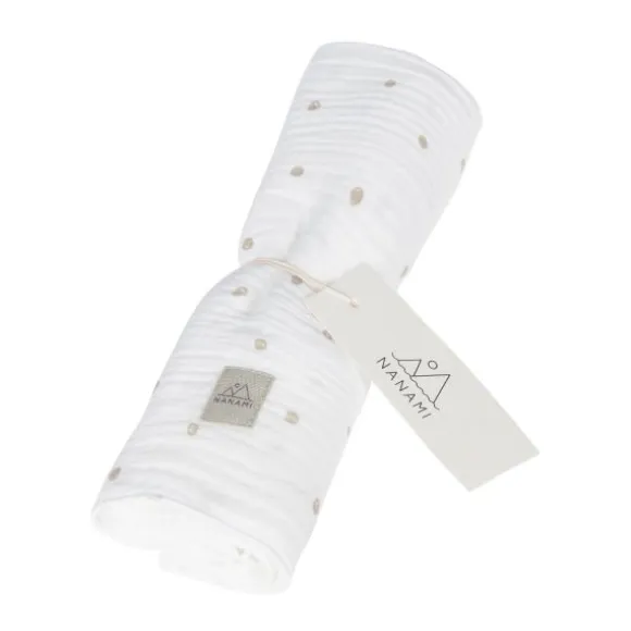 De Nanami Luierdoek – 60×60 cm – Off-White Stipje is een onmisbaar item voor de verzorging van je baby. Deze hydrofiele doek is gemaakt van zacht en ademend katoen en voelt prettig aan op de gevoelige huid. Het schattige stipjespatroon in off-white geeft de doek een speelse en stijlvolle uitstraling. Dankzij het compacte formaat is de luierdoek ideaal te gebruiken als spuugdoek, onderlegger, slab of om kleine ongelukjes op te vangen. Lichtgewicht en makkelijk mee te nemen, zodat je hem altijd bij de hand hebt, zowel thuis als onderweg.