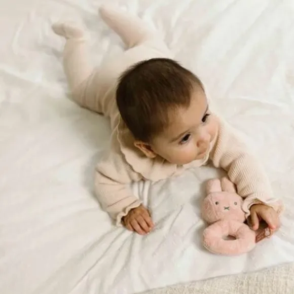 Het zachte rammelgeluid stimuleert de zintuigen, terwijl de ringvorm zorgt voor een goede grip. De rammelaar is gemaakt van gerecycled pluche en voorzien van veilige, geborduurde details. Een mooi en duurzaam kraamcadeautje!