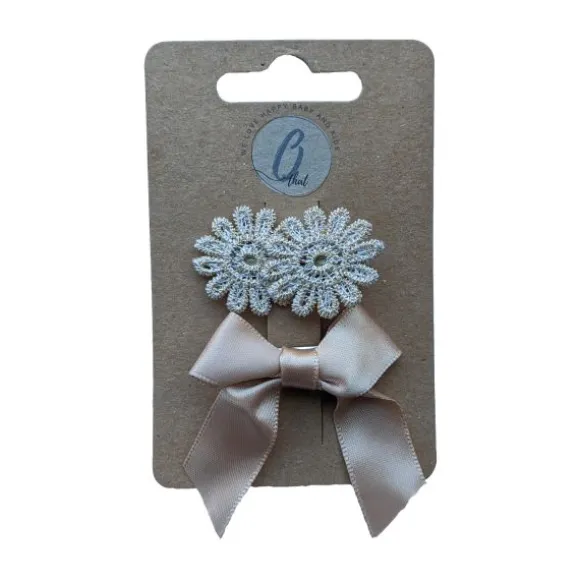 Ootje Kadootje Haarclip Kant Bloem / Grote Strik Zand