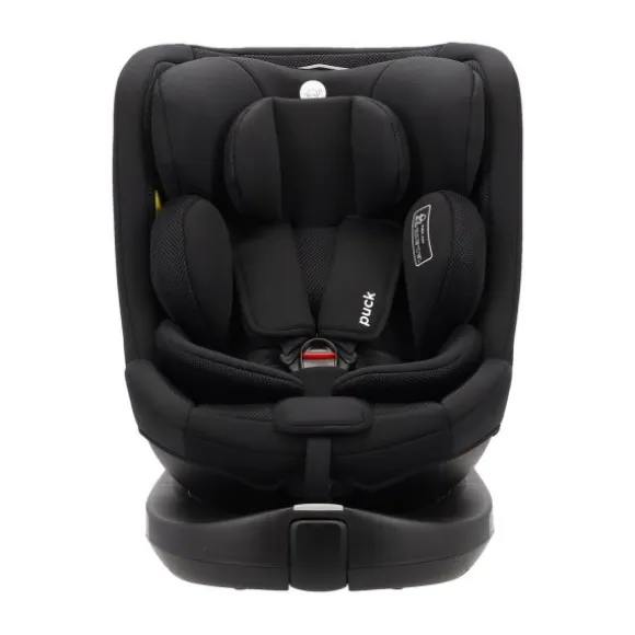 De Puck JUNE is voorzien van een betrouwbare Isofix-installatie en een verstelbare steunpoot, beide uitgerust met visuele indicatoren voor een correcte bevestiging. Deze zorgen voor een stevige en stabiele plaatsing in vrijwel elke auto. Dankzij de 360° draaifunctie draai je de stoel eenvoudig richting de deuropening, waardoor het in- en uitstappen van je kindje soepel en ergonomisch verloopt.