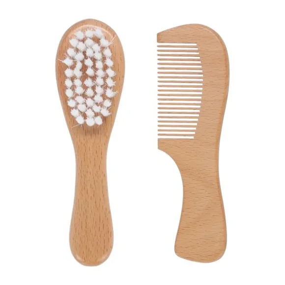 De Puck Baby Haarborstel Set is perfect voor het zacht verzorgen van het haar en de hoofdhuid van je baby. De set bestaat uit een borstel met zachte haren en een kam met fijne tandjes, speciaal ontworpen voor het tere babyhoofdje. Beide items zijn gemaakt van stevig hout en liggen prettig in de hand. De zachte borstel helpt bij het verzorgen van dunne haartjes en het voorkomen van berg, terwijl de kam ideaal is voor het netjes in model brengen van het haar. Een stijlvolle en praktische toevoeging aan de babyuitzet.
