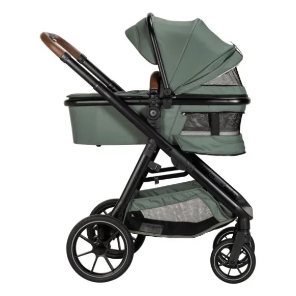 Deze kinderwagen wordt compleet geleverd met een frame, zitting, reiswieg, zonnekap, voetenzak, veiligheidsbeugel, zit/schuif adapterset en autostoel adapters.