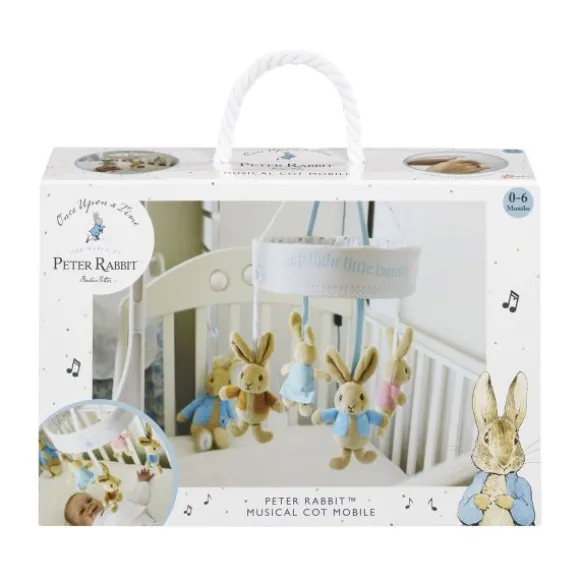 De Rainbow Designs Muziekmobiel – Pieter Konijn – Blauw is een prachtige toevoeging aan elke babykamer. Met vier zachte figuurtjes uit de geliefde Pieter Konijn-verhalen en een rustgevend slaapliedje helpt deze mobiel je kindje ontspannen in slaap te vallen. De figuren draaien rustig rond terwijl de muziek speelt. De mobiel werkt op een traditionele opwinding en heeft geen batterijen nodig. Dankzij de verstelbare kunststof arm is hij eenvoudig en stevig te bevestigen aan een wiegje of ledikant. De geborduurde rand met de tekst “Sleep tight little bunny” maakt het geheel extra sfeervol.
