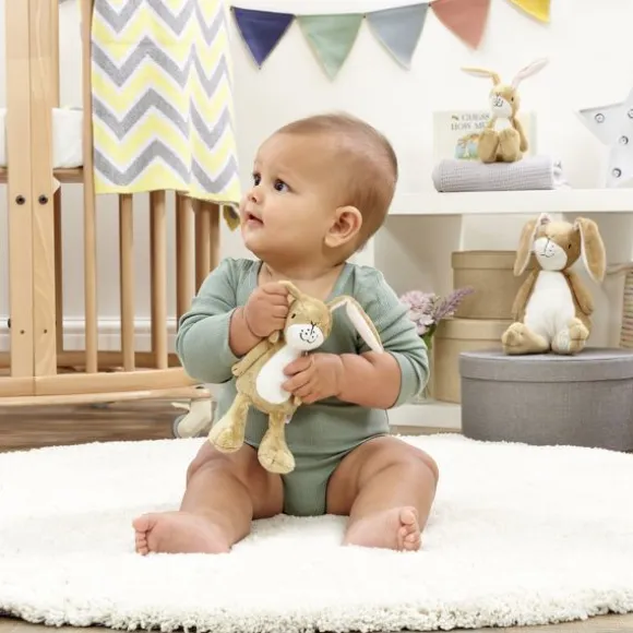 De Rainbow Designs Rammelaar Knuffel – Hazeltje – 14 cm is een lief eerste speelmaatje voor je baby. Deze zachte pluche knuffel is geïnspireerd op het bekende haasje uit *Raad eens…* en bevat een subtiele rammelaar voor extra speelplezier en stimulatie van de zintuigen. Met zijn schattige snoet, lange oren en compacte formaat is Hazeltje perfect voor kleine handjes. Geschikt vanaf de geboorte en ideaal als kraamcadeau of eerste knuffel.