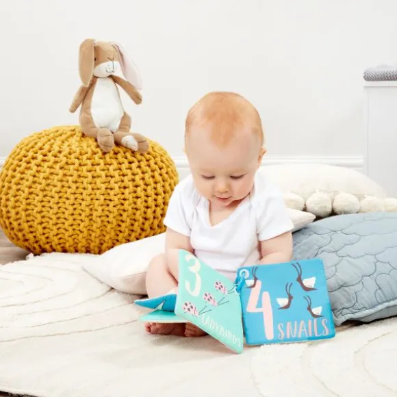 Het Rainbow Designs Voelboekje – Hazeltje – Raad eens… – Play & Go is ideaal voor nieuwsgierige babyhandjes. De zachte, stoffen pagina’s hangen aan een stevige kunststof ring, perfect om mee te nemen in de kinderwagen of autostoel. Elke pagina bevat kleurrijke illustraties en leuke voel- en speelelementjes die de zintuigen van je baby prikkelen. Geïnspireerd op het geliefde verhaal *Raad eens…* is dit boekje niet alleen leerzaam, maar ook een liefdevolle toevoeging aan de eerste boekencollectie van je kleintje. Geschikt vanaf de geboorte.