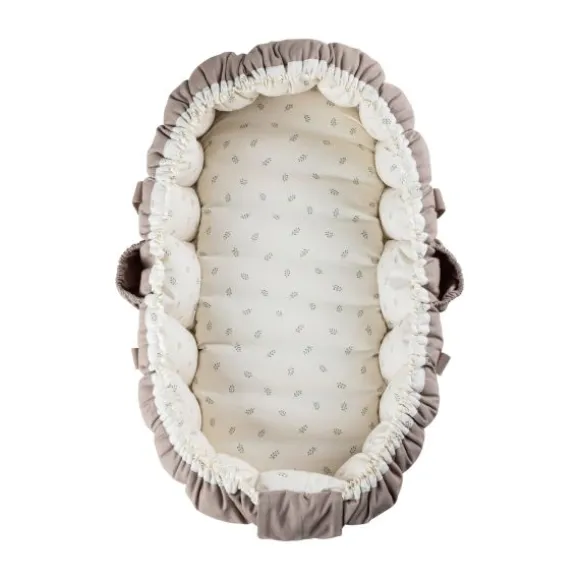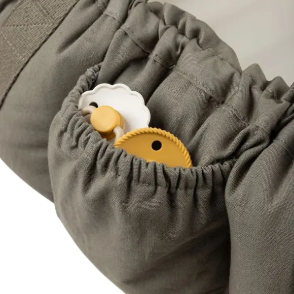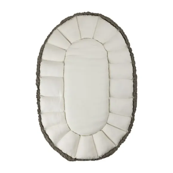 De matras en randen zijn gevuld met kapok: een natuurlijk, ademend materiaal dat hypoallergeen, antibacterieel en temperatuurregulerend is. De matras is iets lager in het midden zodat je kindje veilig in het midden blijft liggen. Aan de zijkant vind je handige vakjes voor kleine essentials zoals een speentje.