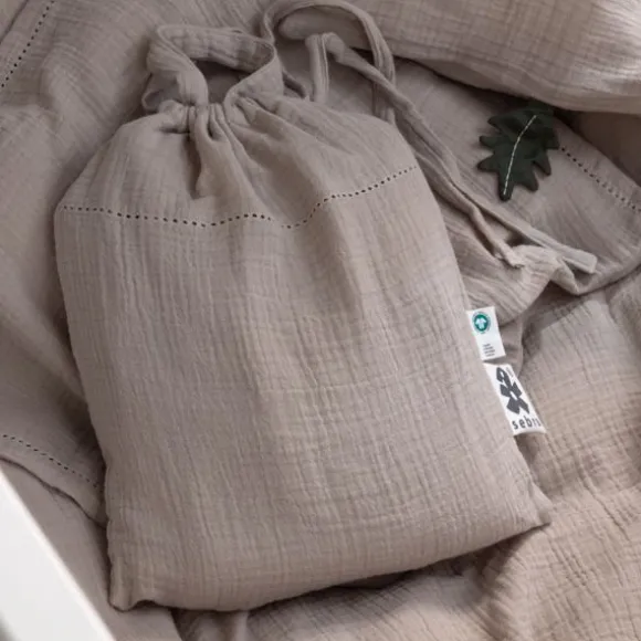 Het Sebra Dekbedovertrek – Seabreeze Beige is gemaakt van 100% biologisch katoen in een zachte dubbele mousseline stof. Deze ademende en huidvriendelijke stof wordt na elke wasbeurt nog zachter en zorgt voor een comfortabele nachtrust. De neutrale kleur Seabreeze Beige past perfect in iedere babykamer. Het dekbedovertrek is afgewerkt met een fijn open zoomrandje (hemstitch) en een klein geborduurd blaadje dat dienstdoet als troostlabel. Dankzij de stevige, verborgen YKK-rits blijft alles netjes en veilig op zijn plek tijdens het slapen. Je ontvangt het beddengoed in een handig bijpassend opbergzakje, ideaal voor speelgoed of verzorgingsspulletjes onderweg. Het duurzame materiaal blijft mooi, ook na veel wasbeurten, en kan makkelijk worden doorgegeven aan een volgend kindje.