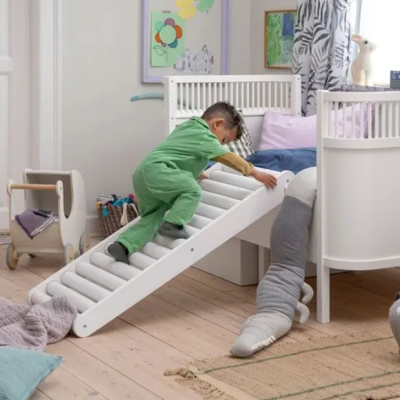 De Sebra Rol Glijbaan – Wit is een perfecte aanvulling voor de kinderkamer. De Glijbaan is voorzien van schuimrollen waardoor je kindje op een leuke manier het bed in of uit kan. De rolglijbaan kan eenvoudig bevestigd worden op het Sebra bed en de Sebra Klimdriehoek. De rol glijbaan is gemaakt van hoogwaardig materiaal.