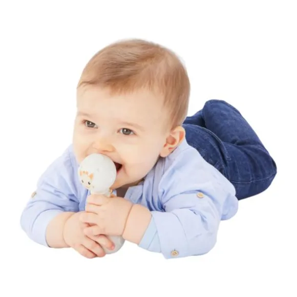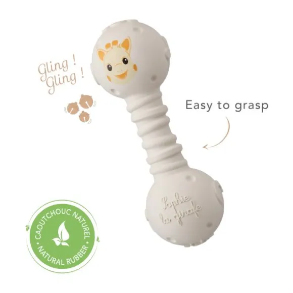 De Sophie de Giraf Bijtrammelaar is perfect om de zintuigen van je baby te stimuleren. Het vrolijke geluid van belletjes prikkelt het gehoor, terwijl de kleuren en Sophie’s afbeelding de aandacht trekken. Het zachte, geribbelde handvat is makkelijk vast te houden en biedt verlichting bij doorkomende tandjes. Gemaakt van 100% natuurlijk rubber, met een fijne geur voor extra zintuigelijke stimulatie. Geschikt vanaf 3 maanden.