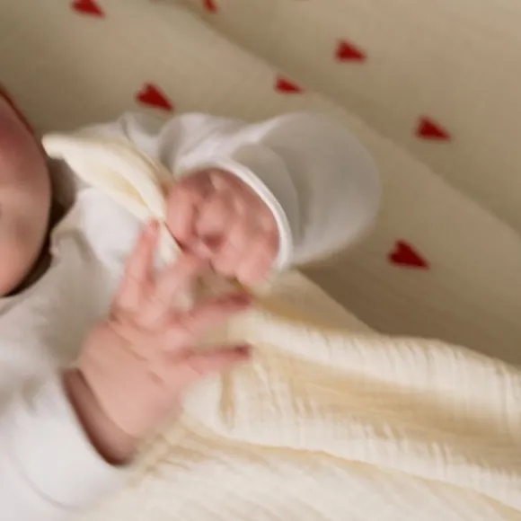 De Studio Noos Swaddle – Light blue Hearts – 120×120 cm is een royale en zachte hydrofiele doek, perfect voor dagelijks gebruik met je baby. Gemaakt van 100% biologisch katoen, biedt deze mousseline doek optimaal comfort en ademend vermogen. De speelse hartjesprint op een natuurlijke ondergrond geeft de swaddle een vrolijke en liefdevolle uitstraling. Dankzij het grotere formaat is deze swaddle ideaal voor inbakeren, als dekentje in de kinderwagen, als voedingsdoek of zelfs als zonnescherm. Hij voelt heerlijk zacht aan tegen de huid van je kindje en is een stijlvolle toevoeging aan elke babyuitzet. Wasbaar op 40°C (zonder centrifugeren) en niet geschikt voor de droger.
