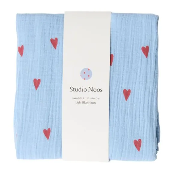 Studio Noos Swaddle – Light blue Hearts – 120×120 cm