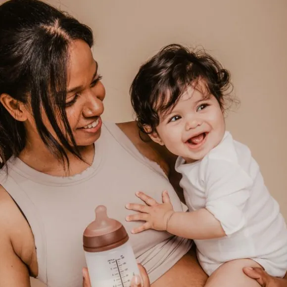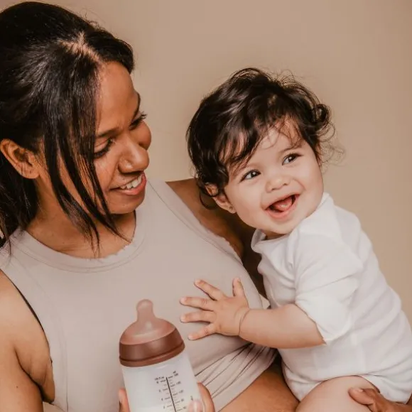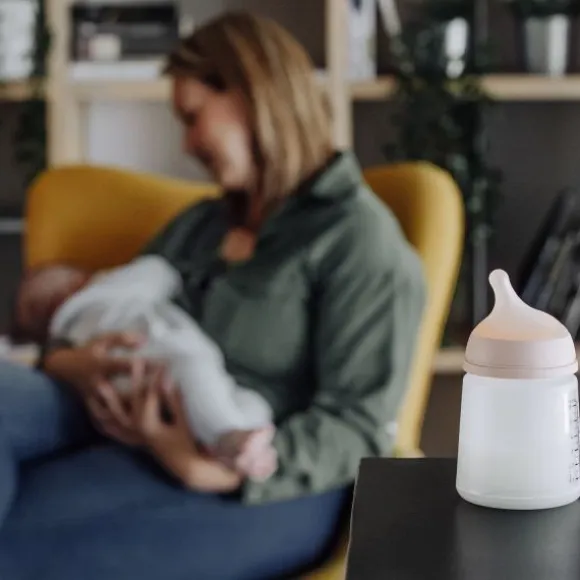 Dankzij het geïntegreerde anti-koliek systeem wordt luchtinname tijdens het drinken sterk verminderd, wat helpt om buikkrampjes, reflux en ongemak te voorkomen. De speen is speciaal gevormd om de borst na te bootsen, waardoor deze fles ideaal is bij het combineren van borstvoeding met flesvoeding.