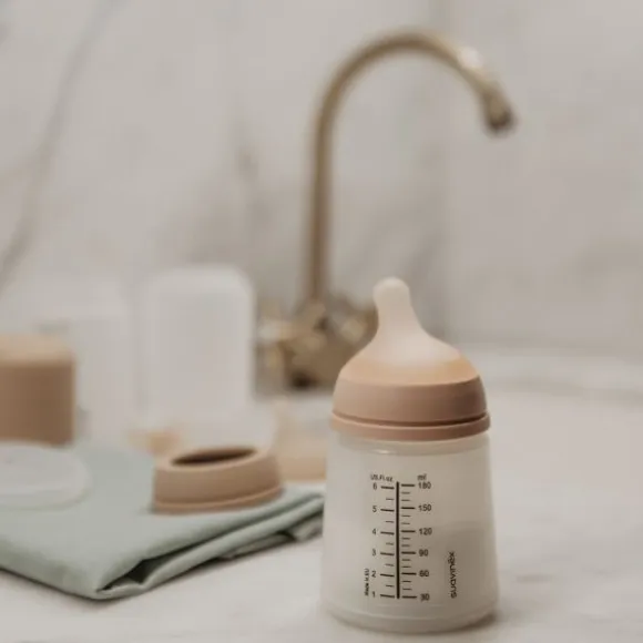 De Suavinex Babyfles – Zero Zero – Slow Flow 180ml – Deep biedt een harmonieuze combinatie van stijl, comfort en functionaliteit. Deze babyfles in een diepe, warme bruine kleur is ontworpen voor een natuurlijke en rustige voedingservaring vanaf de geboorte. De slow flow speen zorgt voor een langzame melktoevoer en ondersteunt het natuurlijke zuigritme van je baby.