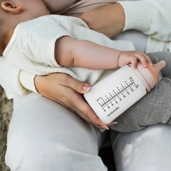 De fles is gemaakt van BPA-vrij, duurzaam materiaal en voorzien van een duidelijke maatverdeling in milliliters en ounces. Het ergonomische ontwerp ligt prettig in de hand en is eenvoudig te reinigen, waardoor deze fles perfect is voor dagelijks gebruik. Een stijlvolle en betrouwbare keuze voor iedere ouder.