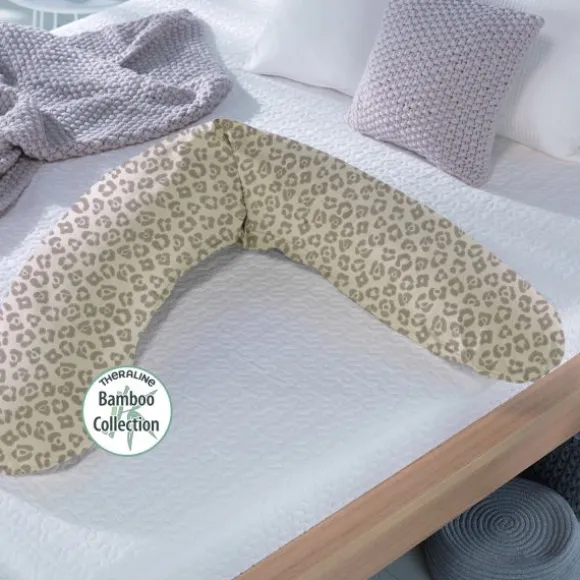 Het Theraline Voedingskussen Original – Leo biedt ultiem comfort tijdens zwangerschap en borstvoeding. Dit extra lange en buigzame kussen ondersteunt je buik, rug en benen voor een betere nachtrust. Dankzij de flexibele en stabiele vulling vormt het kussen zich naar je lichaam en blijft het stevig op zijn plek. Ook tijdens het voeden zorgt het voor een ergonomische houding, wat ontspanning biedt voor zowel moeder als baby. De hoogwaardige hoes, gemaakt van een mix van bamboeviscose en biologisch katoen, voelt heerlijk zacht aan en is ademend. Het kussen is toxicologisch getest, reukvrij en wasbaar voor langdurig gebruik. Een must-have voor iedere (aanstaande) ouder!