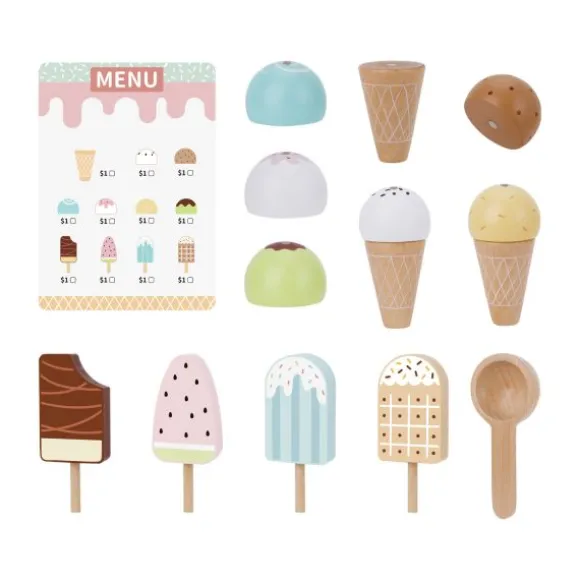 Het levendige ontwerp en de gedetailleerde afwerking zorgen voor een meeslepende speelervaring die de fantasie prikkelt. Naast eindeloos speelplezier draagt deze ijswinkel ook bij aan de ontwikkeling van sociale vaardigheden. Door te spelen met anderen leren kinderen delen, communiceren en samenwerken. Gemaakt van duurzaam hout en kindveilige verf is deze speelset stevig, veilig en een feest voor elke speelhoek.