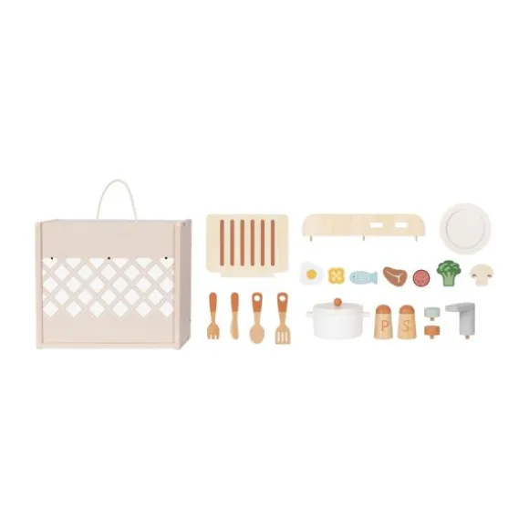 De Tooky Toy Speelkeuken Mini – Hout is een droomkeuken voor elke kleine chef! Deze compacte, draagbare speelkeuken is voorzien van een realistisch fornuis, pannenset en schattige kruidenpotjes waarmee je kindje de heerlijkste maaltijden kan bereiden. Dankzij het slimme, afneembare ontwerp is de set eenvoudig mee te nemen en overal te gebruiken – van de speelhoek tot het vakantiehuisje. De duurzame en kindvriendelijke materialen maken deze keuken niet alleen stevig, maar ook veilig in gebruik