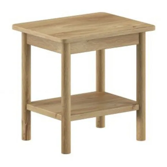 De Vipack Nachtkastje – Olive – Eik is een stijlvolle en praktische toevoeging aan de kinderkamer of tienerkamer. Dankzij het tijdloze design met warme eikenhoutlook en natuurlijke afwerking past dit nachtkastje moeiteloos bij verschillende interieurs. De ronde poten en zachte lijnen geven het geheel een rustieke uitstraling. De nachttafel is gemaakt van eik en MDF en afgewerkt met een beschermende laklaag. De twee open legplanken bieden voldoende ruimte voor boeken, een lampje of andere spulletjes die je graag binnen handbereik hebt. Ideaal in combinatie met de bedden uit de Olive collectie voor een harmonieus geheel.