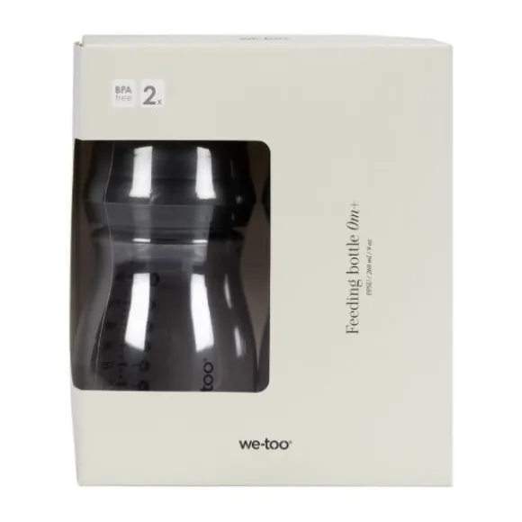 De We-Too Standaardfles PPSU – 260 ml – Oatmeal – 2-pack is de perfecte fles om je kindje dagelijks mee te voeden. De fles is ergonomisch ontworpen wat het makkelijker maakt om de fles te geven en om moeiteloos schoon te kunnen maken. De fles is vrij van bisfenol A en Ftalaten. Daarnaast is de fles hitte bestendig tot 180 graden. Verder is de fles verkrijgbaar in verschillende kleuren en groottes. De fles wordt standaard geleverd met een stage 1 speen, geschikt voor 0+ maanden.