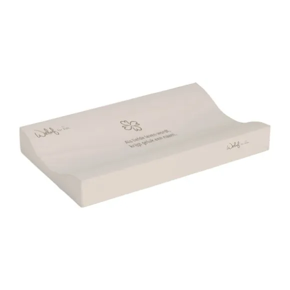 Het Witlof for Kids Aankleedkussen – Klavertje is een stijlvolle en praktische toevoeging aan elke babykamer. Met een rustgevende taupe kleur en een subtiel klaverdesign gecombineerd met de inspirerende tekst “Als liefde leven wordt, krijgt geluk een naam”, brengt dit aankleedkussen niet alleen comfort maar ook sfeer in de verzorgingsruimte van je kindje. Het kussen is vervaardigd uit hoogwaardig stevig foam, waardoor je kindje comfortabel ligt tijdens het verschonen of aankleden. De opstaande randen bieden extra veiligheid en ondersteuning, zodat je met een gerust hart je baby kunt verzorgen. Dankzij de ergonomische vorm blijft je kindje stabiel liggen, wat het gebruik extra gemakkelijk maakt. De bijgeleverde hoes is gemaakt van gecoat katoen, wat zorgt voor een zacht aanvoelende, maar makkelijk afneembare oppervlakte. Even afnemen met een vochtige doek is voldoende om het aankleedkussen schoon en fris te houden. Ideaal voor dagelijks gebruik en perfect te combineren met andere items uit de collectie van Witlof for Kids.