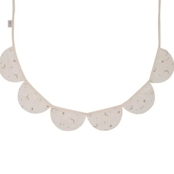 De vlaggetjes hebben een unieke afgeronde vorm en zijn gemaakt van 100% katoen, wat zorgt voor een natuurlijke uitstraling en langdurig gebruik. Hang de vlaggenlijn boven het bedje, bij de commode of langs een wandplankje voor een speelse, maar stijlvolle finishing touch.