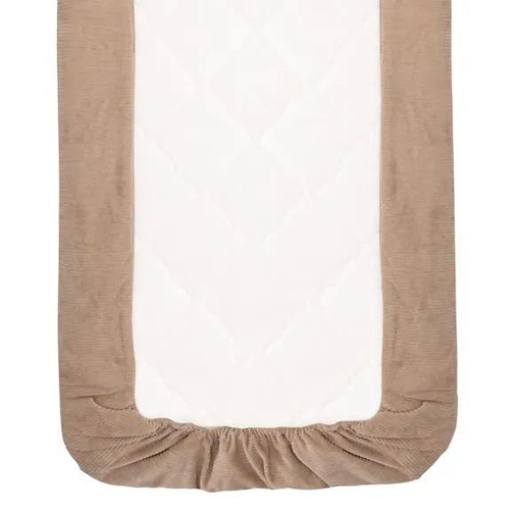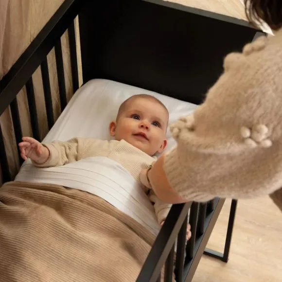Met de Witlof For Kids Velvet Rib Tuck-Inn Ledikantdeken – Soft Sand kan je kindje heerlijk rustig in het bedje slapen. De ledikantdeken is gemaakt van hoogwaardig materiaal en voelt heerlijk zacht en comfortabel aan. Bij het voeteneind beschikt de deken over een handig elastiek, waardoor het bedje van je kindje eenvoudig en strak opgemaakt kan worden. Bovendien zorgt dit Tuck-Inn systeem ervoor dat je kindje de deken niet los kan trappelen. Verder kan het dekentje perfect worden gecombineerd met het andere beddengoed van Witlof For Kids. Tips voor veilig gebruik van beddengoed: Zorg ervoor dat je kindje met zijn voetjes dicht bij het voeteneind ligt. Maak het bedje kort en strak op en zorg ervoor dat het beddengoed niet hoger dan de schoudertjes van je kindje reikt.