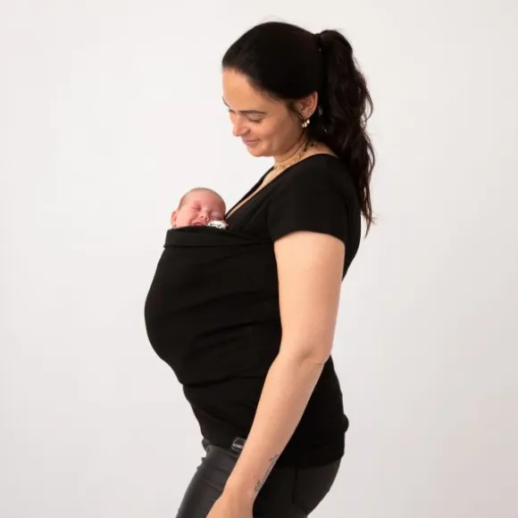 Met het Womboo Buidelshirt draag je je kindje in een handomdraai moeiteloos met je mee. Het buidelshirt lijkt op het eerste oog een normaal t-shirt, maar is eigenlijk multifunctioneel en super praktisch dankzij de buidel. Hierin draag je je kindje al vanaf de geboorte tot ongeveer 9 kg dicht tegen je aan, wat een vertrouwd en geborgen gevoel zal geven voor je kindje. Bovendien bevordert het de hechting met je kind, wat voor beide ouders net zo belangrijk is. Ook heeft het als voordeel dat wanneer je je kindje met je meedraagt, hij of zij rechtop zit en daardoor minder last heeft van krampjes en reflux. Het enige wat je hoeft te doen is het t-shirt aantrekken, de buidel open houden en je kindje er voorzichtig in laten zakken. Dus geen bevestiging met knopen of kliksystemen die ingewikkeld zijn, maar direct dicht tegen je aan en je hebt je handen vrij voor andere dingen. Na gebruik mag het buidelshirt zonder wasverzachter worden gewassen op 40 graden, maar is niet geschikt voor in de droger.