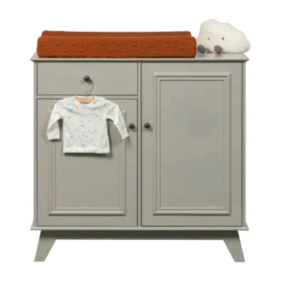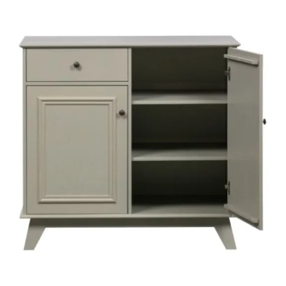 De Woood Lily Opbergkast Grenen Clay is gemaakt van grenen dat is afgewerkt in een warm grijze kleur. De opbergkast is voorzien van een lade met een zwart metalen knop en twee deuren voorzien van een zwart metalen knop. De kast heeft voldoende opbergruimte. Leuk te combineren met andere producten van de Woood Lily collectie.